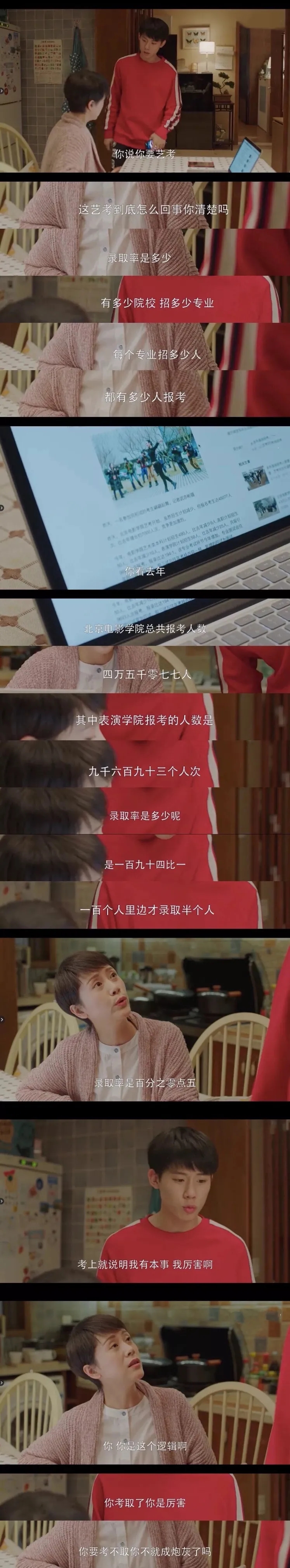 《小歡喜》中方一凡因文化課成績不理想,萌生了參加藝考的想法,卻遭到媽媽的反對。媽媽童文潔的擔心并不是空穴來風,用數據告訴方一凡,藝考一點也不簡單。